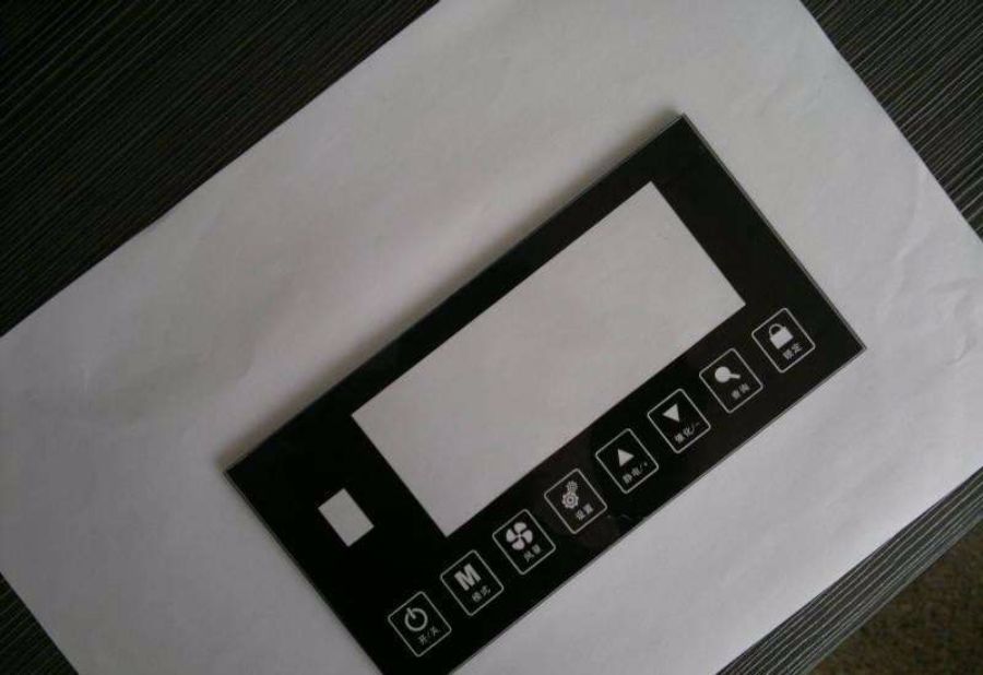 这种控制盘表面罩有导电性的膜,在其周围用丝网印刷陶瓷系油墨进行装饰和文字显示。其优点是耐机械磨损、耐化学腐蚀、去污容易。另外,设计时为使玻璃着色,可在背面印刷有机涂料,由于背面不能直接接触,耐久性强,在玻璃丝网印刷油墨时的选择余地也较大。